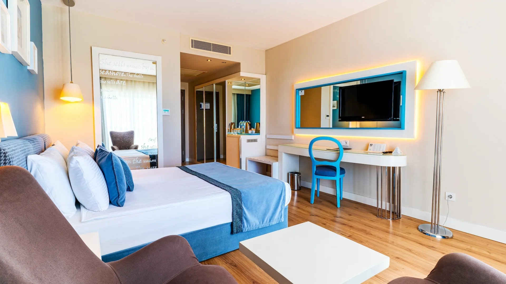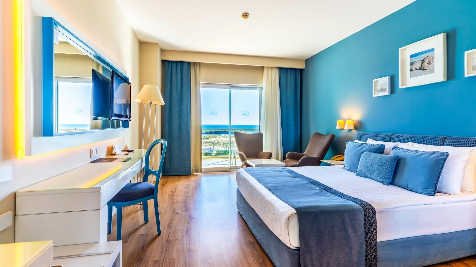 Имеет великолепный вид на море. Наслаждаясь видом с балкона, вы насладитесь спокойным отдыхом. VIP косметический набор. К вашим услугам капсульная кофемашина и ежедневная услуга «Turn Down» (уборка два раза в день).